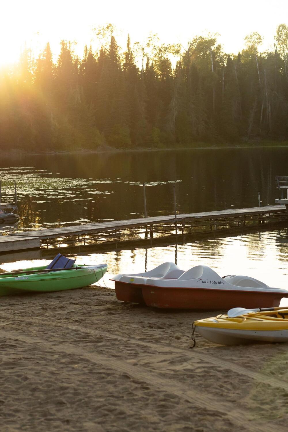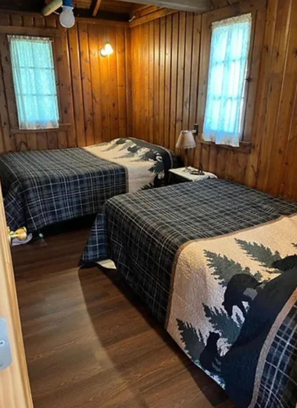 Guests enjoy easy parking at each cabin, a private sandy beach, five docks for boats, a playground for kids, and direct lake access. Clear Lake offers abundant sunfish and perch, plus black crappie, bass, northern pike, and walleye, perfect for anglers of all ages.
