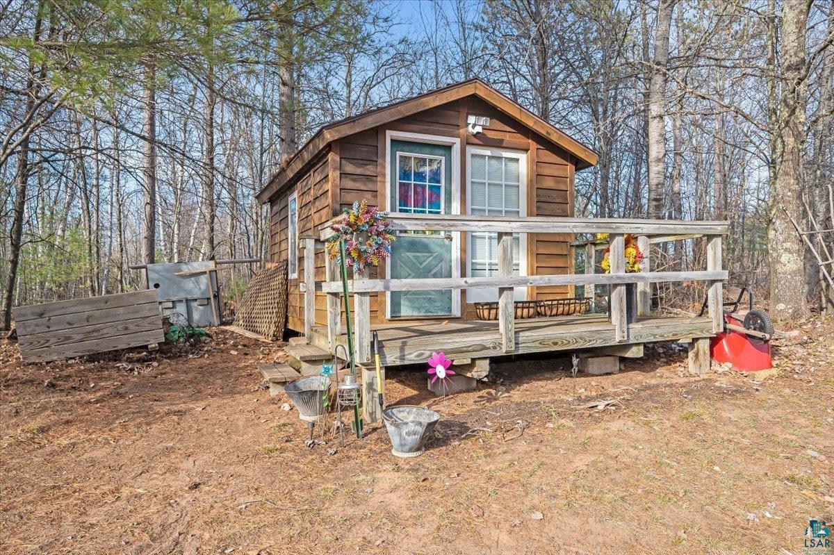 Peaceful, private, perfection. If you are looking for a little place to get away and store all your gear in Bayfield County, we have the place for you. This year-round home was the seller’s primary residence and it is ready for you to move right in. This one bedroom, 1 bathroom home has so much to offer in an efficient design. Come up onto the covered porch and in the front door and you will find a nice 4 season porch that is heated and insulated, with room for a bed for your guests. Speaking of guests, there is a quaint guest house that can provide more space when needed. The kitchen is open to the living room and provides plenty of space for a table and chairs and offers great views out over the large deck, onto the yard and over the pond. This is a view you will enjoy while drinking your favorite beverage, eating your meals or just relaxing. The primary bedroom suite is cozy and great for snuggling up. It features an attached 3/4 bathroom. Outside you will find an awesome storage shed, a well/pump house and, as mentioned before, the great little guest house. To cap it all off, there is a newer 30×40 insulated and heated garage with a concrete floor and 200 Amp electrical service. This is not a huge house and that will make life easy as it doesn’t weigh you down with all the overhead. There is a nice outhouse and a nice pumphouse. Seller may want to leave personal property and furniture behind. Photos also may not reflect the personal property currently on the premises. Country living at its best!