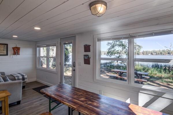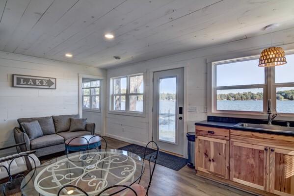 Rare find! TWO charming, fully remodeled lakeside cottages on one spacious waterfront lot! One cabin has 3 bedrooms, and the other has 2 bedrooms, and each cabin has a bathroom. Located right on the edge of Lac Courte Oreilles, this unique property offers 180′ shoreline with unbeatable views, direct water access, and the perfect setup for a private retreat. Both cabins were taken down to the studs and fully re-done in 2021. Sold “turn-key” right down to the dishes! New roof, furnace, A/C, windows, well, siding, appliances, wall & floor coverings, and more. Each cabin has a full bathroom and each cabin has an outdoor shower. Custom built-in bunk beds. Excellent swimming, boating, and fishing right from your doorstep. You can also venture out on the boat and visit one of the bars/restaurants on the lake or meet up with friends at the sandbar. All just 15 minutes from downtown Hayward.