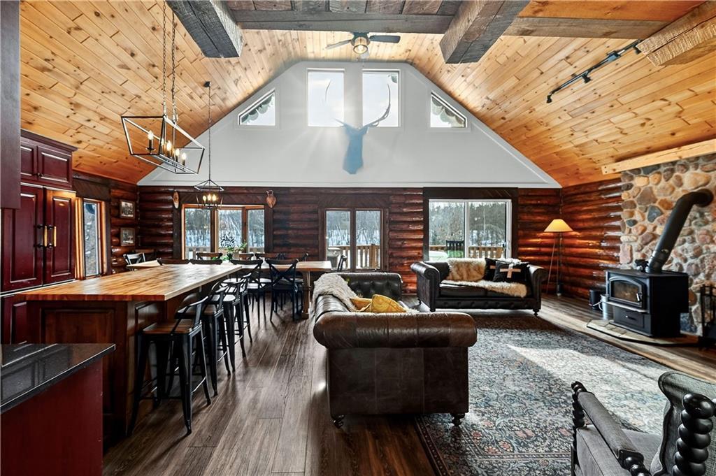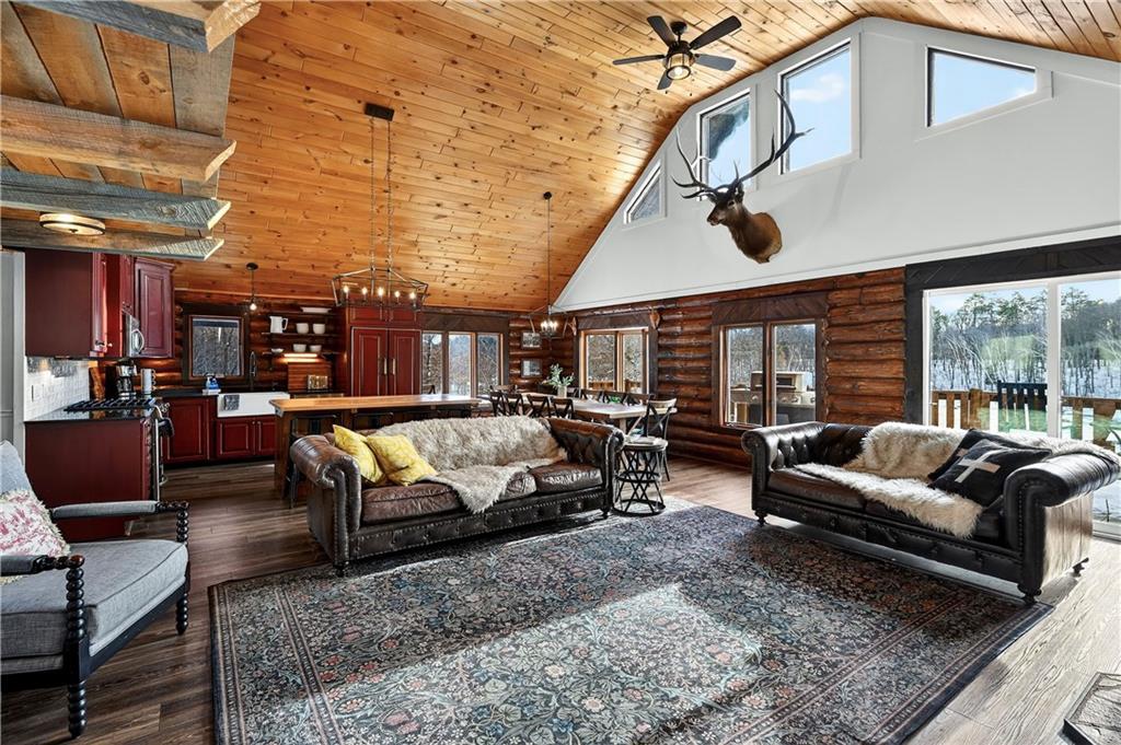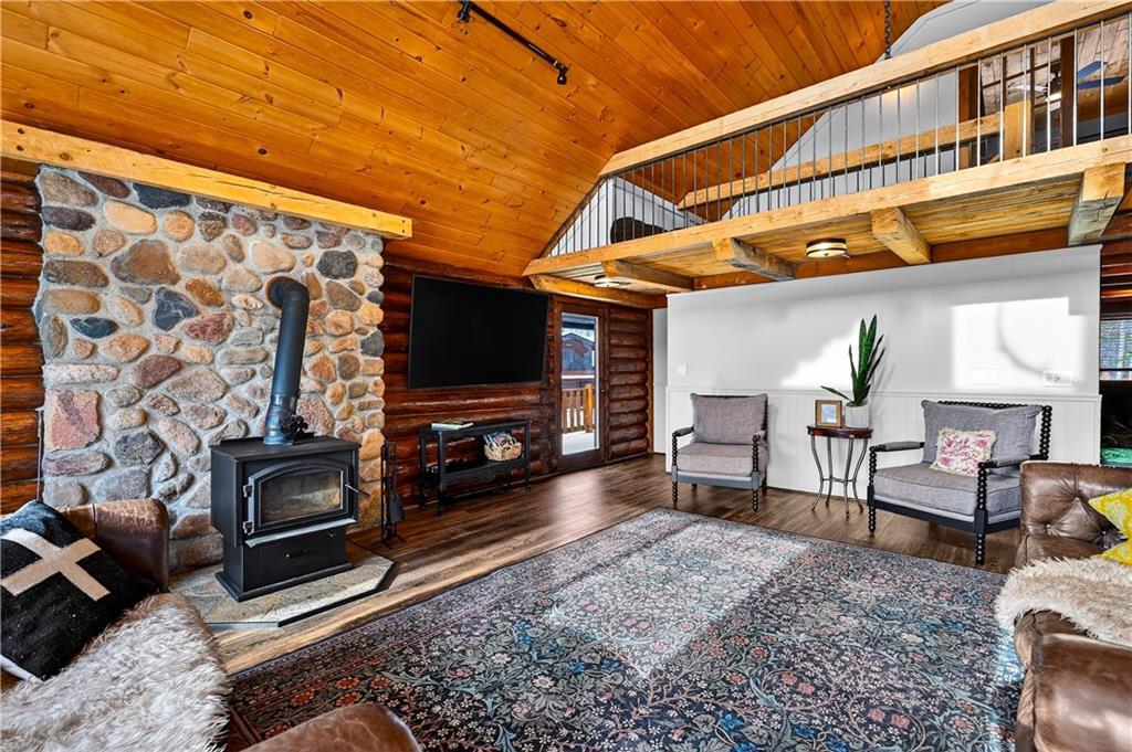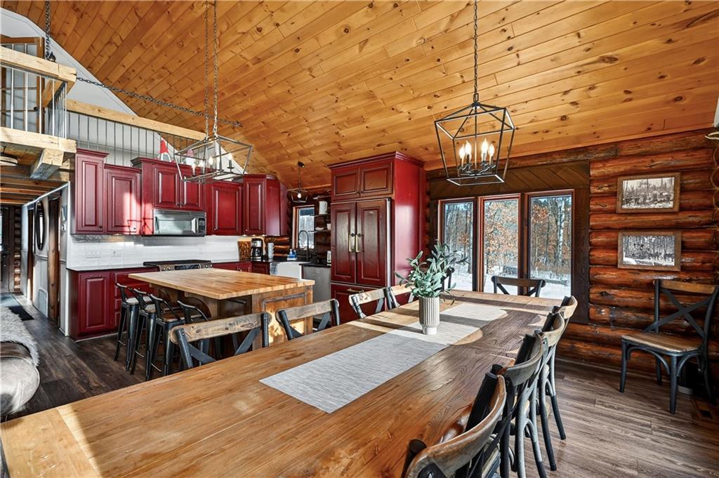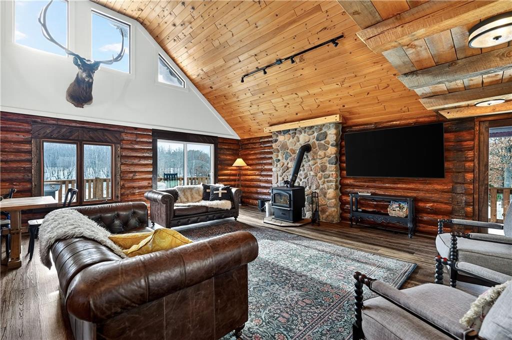 Nestled on 10 enchanting acres, this Idyllic Log Cabin Retreat offers an escape that feels plucked from the pages of a storybook, just a quick 10-minute drive from Hayward. Embrace the rustic elegance of handcrafted log construction, marrying timeless charm with modern flair. Step inside to be greeted by grand high ceilings and exposed beams, with sunlight dancing through huge windows. Feel the warmth of the wood stove as you explore a trendy kitchen that whispers the secrets of culinary adventures waiting to unfold. The loft promises whispers of childhood dreams, while a cozy sitting area invites lazy afternoons with a good book in hand. Tranquility finds you here, with room for three cars in the garage and the potential for a whimsical bunkhouse above. And let’s not forget Rainbow Creek, murmuring soft serenades through the landscape?it’s nature’s own symphony. It’s not just a retreat; it’s a haven where peace shakes hands with adventure and says, “Stay a while longer.”