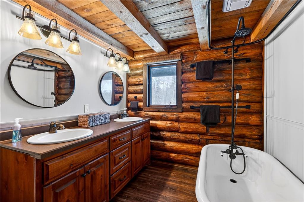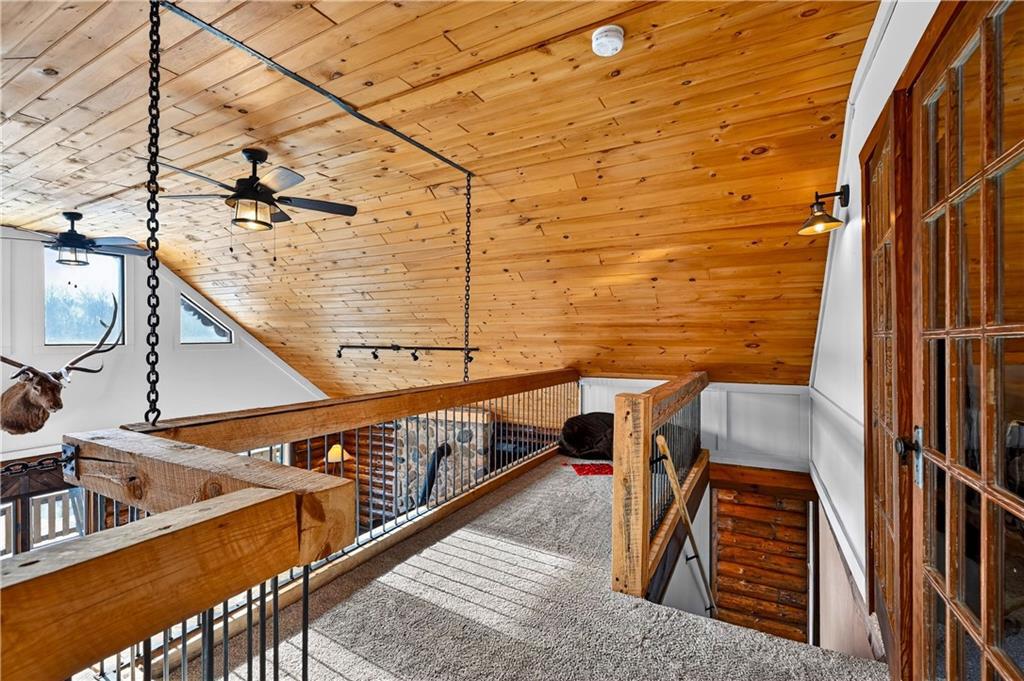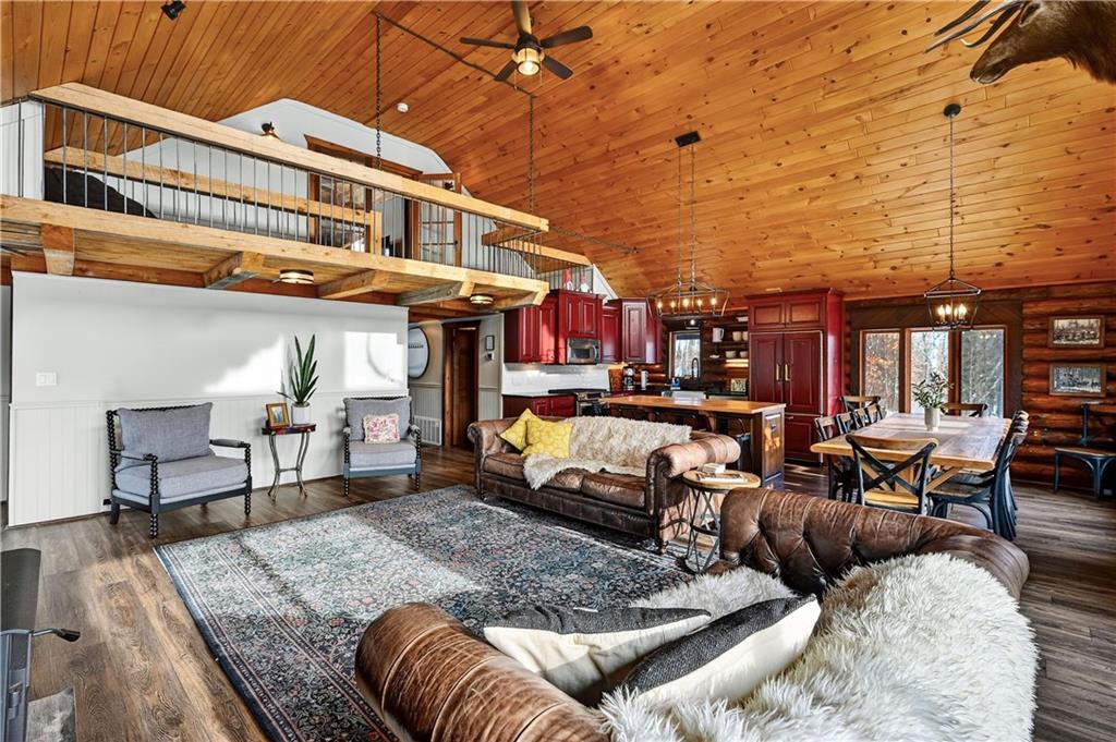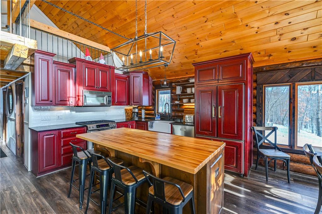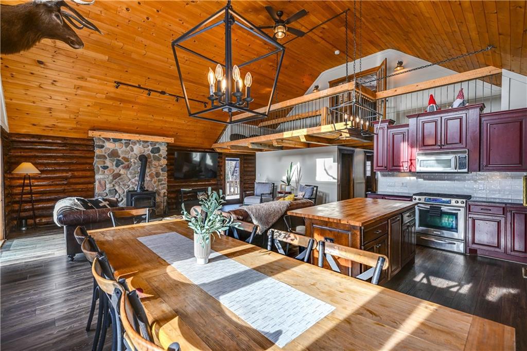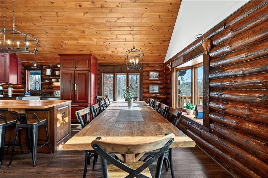 Nestled on 10 enchanting acres, this Idyllic Log Cabin Retreat offers an escape that feels plucked from the pages of a storybook, just a quick 10-minute drive from Hayward. Embrace the rustic elegance of handcrafted log construction, marrying timeless charm with modern flair. Step inside to be greeted by grand high ceilings and exposed beams, with sunlight dancing through huge windows. Feel the warmth of the wood stove as you explore a trendy kitchen that whispers the secrets of culinary adventures waiting to unfold. The loft promises whispers of childhood dreams, while a cozy sitting area invites lazy afternoons with a good book in hand. Tranquility finds you here, with room for three cars in the garage and the potential for a whimsical bunkhouse above. And let’s not forget Rainbow Creek, murmuring soft serenades through the landscape?it’s nature’s own symphony. It’s not just a retreat; it’s a haven where peace shakes hands with adventure and says, “Stay a while longer.”